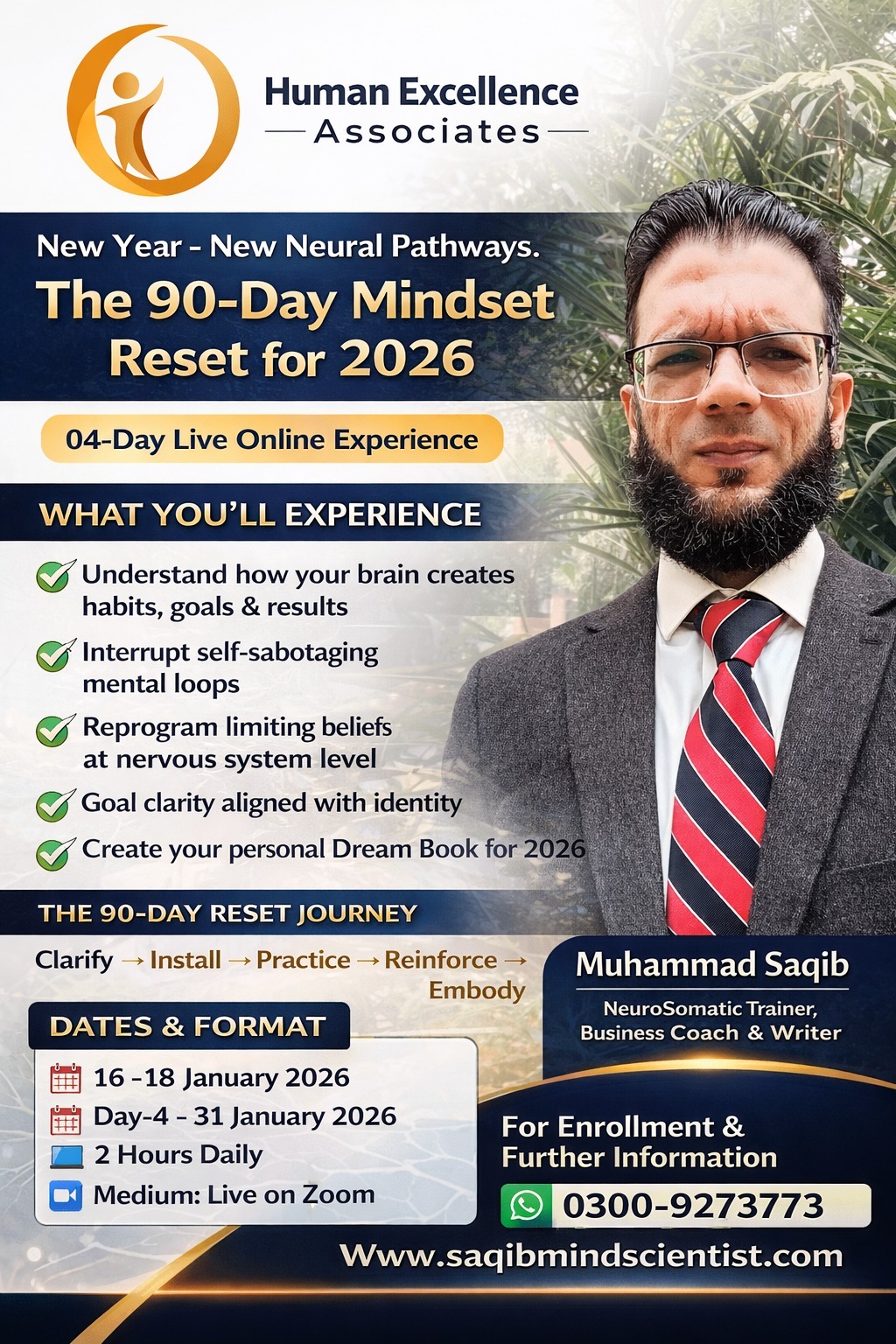At The Saqib Mind Scientist, our workshops are not lectures they are experiences that reprogram the mind and awaken human potential. Each session blends NeuroSomatic tools, NLP and Hypnosis-based exercises to create deep mental rewiring and emotional breakthroughs.